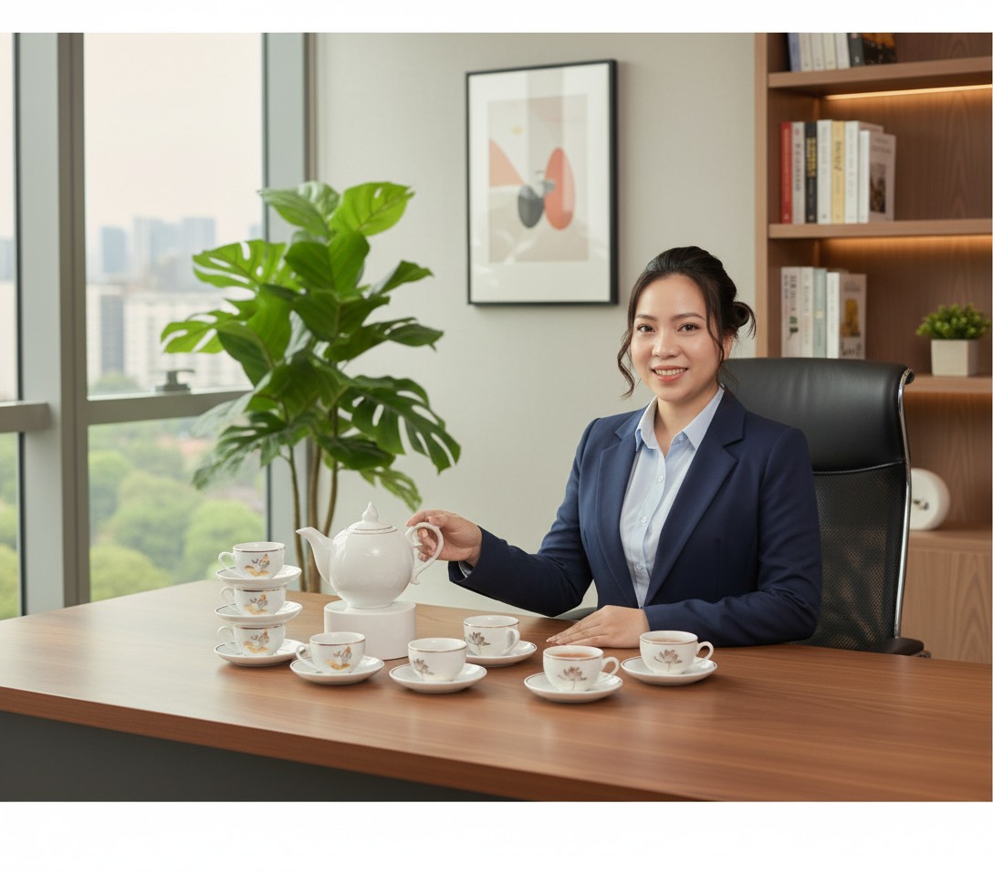 Doanh nghiệp có thể in logo lên ấm, chén, đế lót hoặc hộp quà – nâng cao nhận diện thương hiệu khi tặng đối tác.