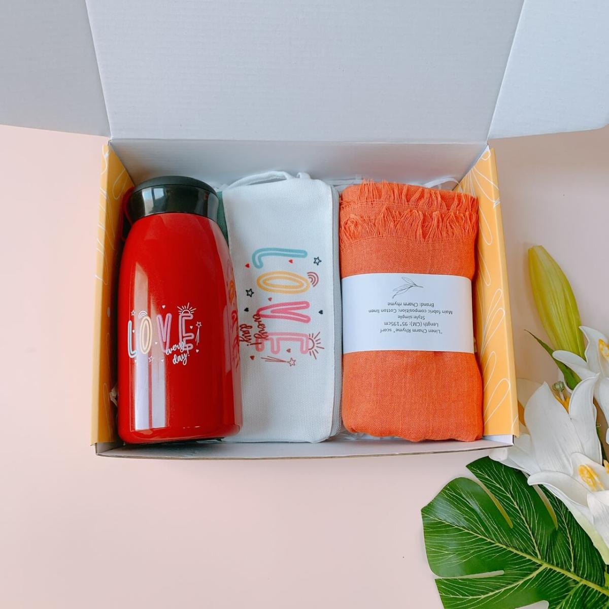 Sổ bìa da, bút ký, bình giữ nhiệt, USB… thiết kế đồng bộ theo màu thương hiệu. Món quà vừa thực tế, vừa đẳng cấp.