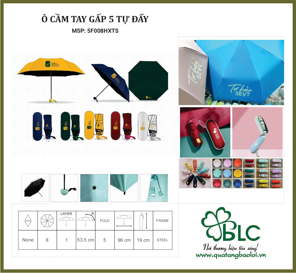 Quà Tặng Bảo Lợi nhận sản xuất ô dù cầm tay in logo với nhiều mẫu mã và màu sắc khác nhau, phù hợp cho các chương trình quảng cáo và quà tặng doanh nghiệp.